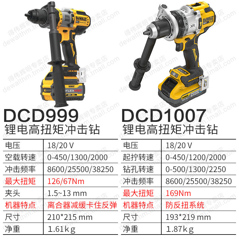 美国得伟20V充电式无刷冲击钻DCD999锂电冰钻冰钓DCD1007工业级