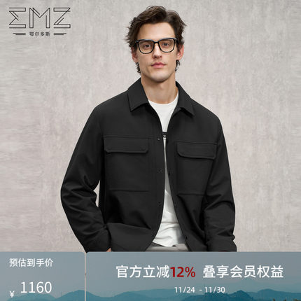 【雷军同款】EMZ鄂尔多斯秋冬新款内磨毛软壳翻领短款夹克外套男