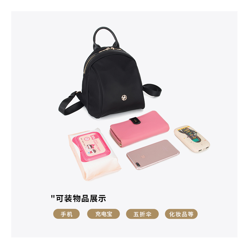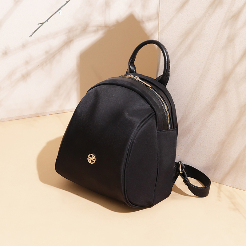 Leff迷你双肩包女2025新款小号妈咪包上班通勤休闲黑色牛津布背包