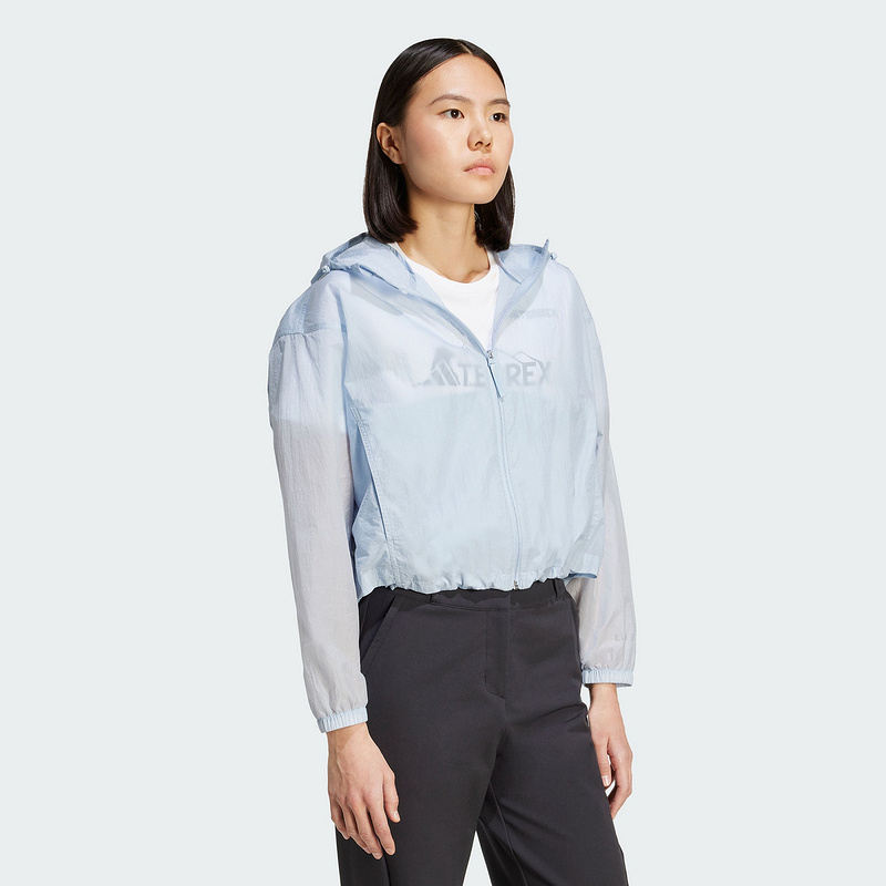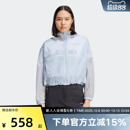 阿迪达斯25夏女梭织户外防泼防风透湿疏水运动连帽夹克外套JD5939