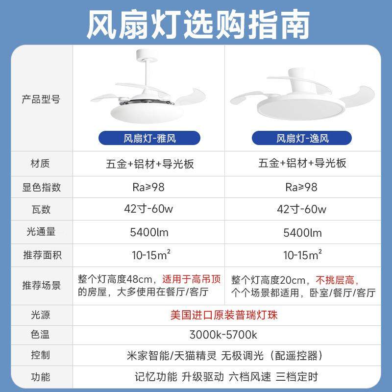 风扇灯全灯025NWX光谱2护眼卧室奶油风大厅吸灯具语音控顶制米家