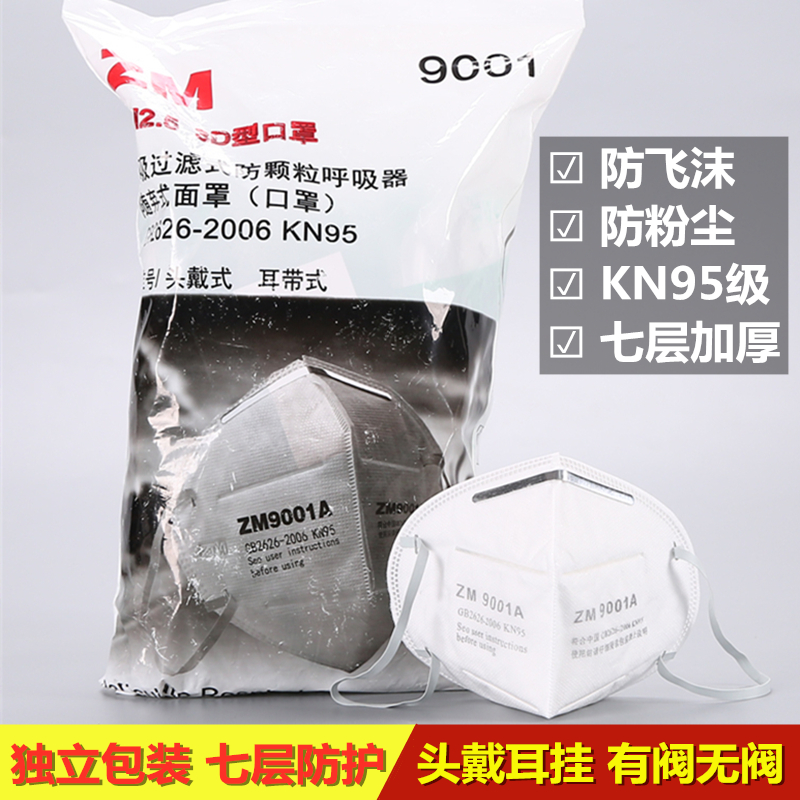 ZM9002头戴式防尘口罩防工业粉尘打磨灰粉9001V带呼吸阀透气KN95
