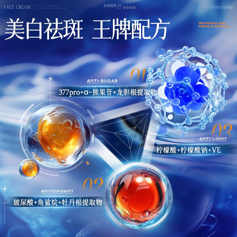 377美白祛斑面霜烟酰胺去黄褐斑老年斑淡化色斑去黄提亮改善暗沉