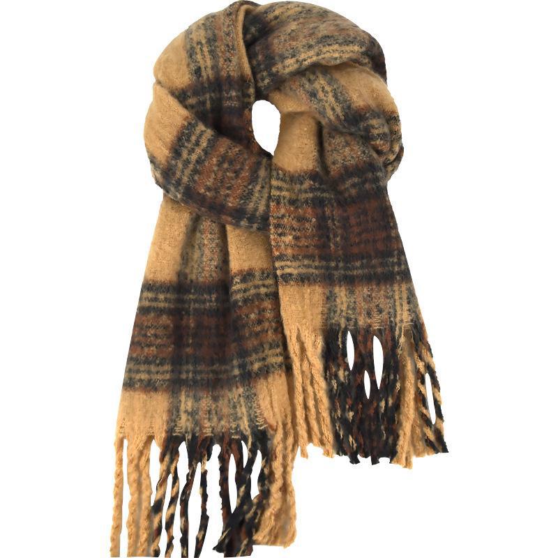 时尚围巾女生冬季韩版百搭加厚保暖两用格子大披肩情侣围脖护颈X1