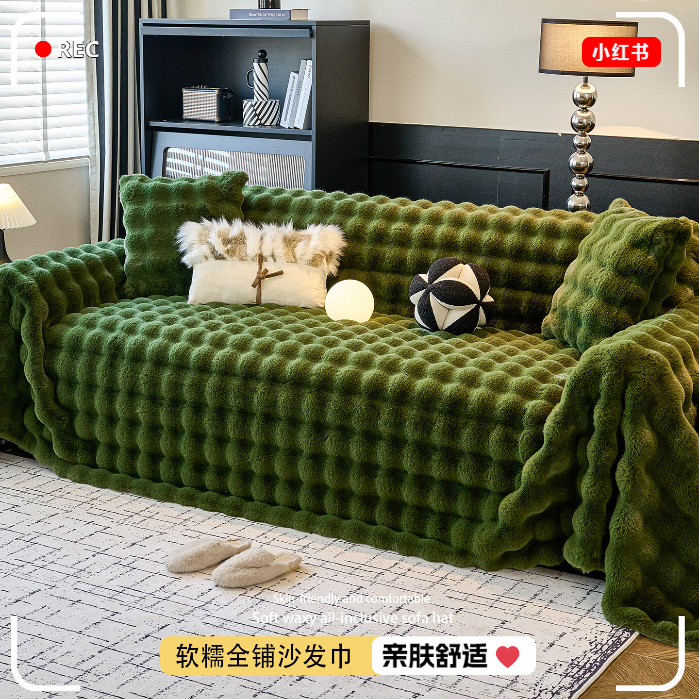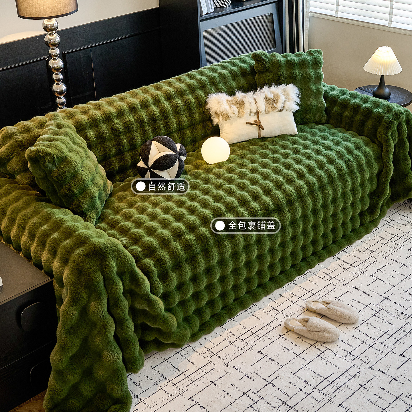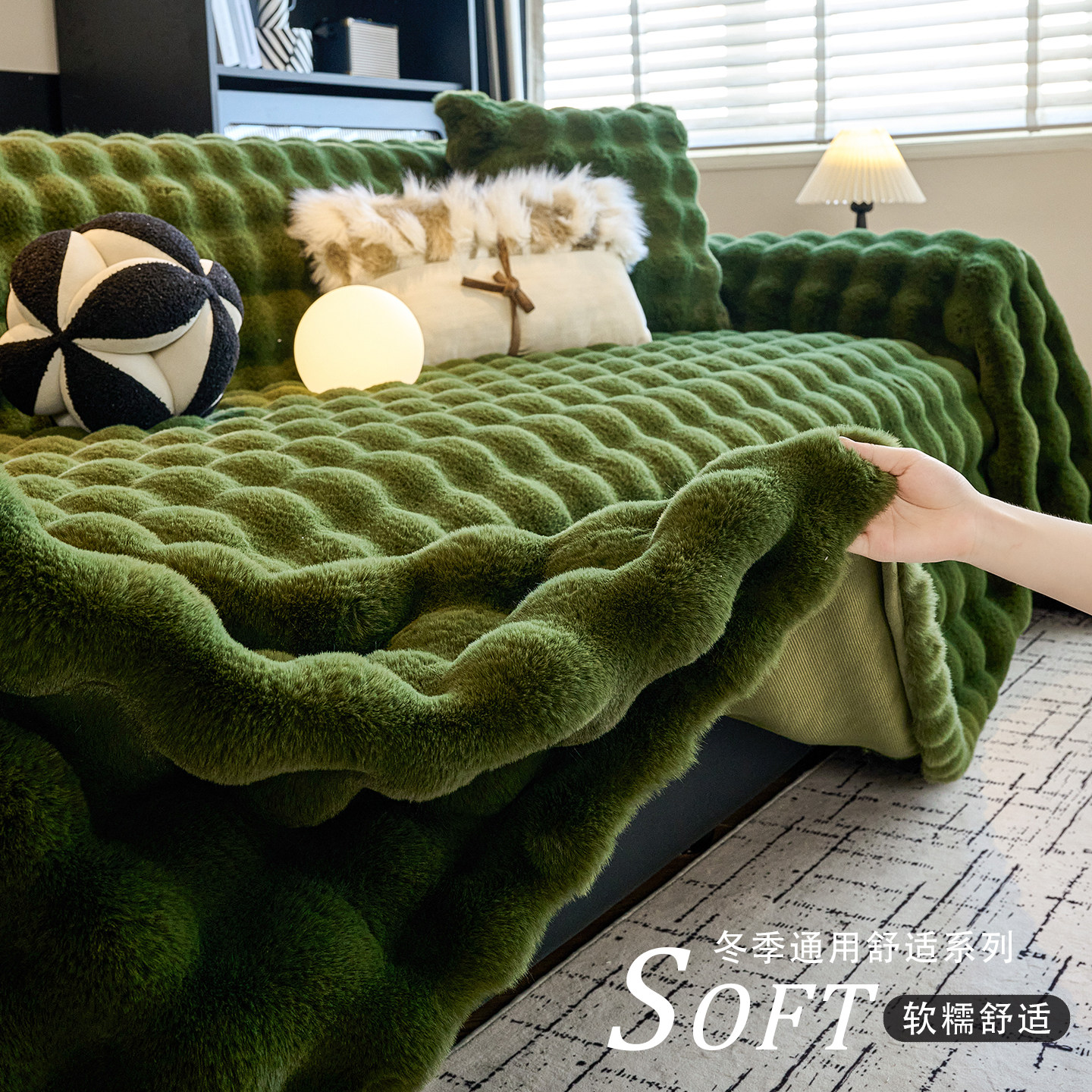 兔毛绒沙发巾沙发盖一片式冬季毛绒加厚防滑全包盖布巾万能沙发垫