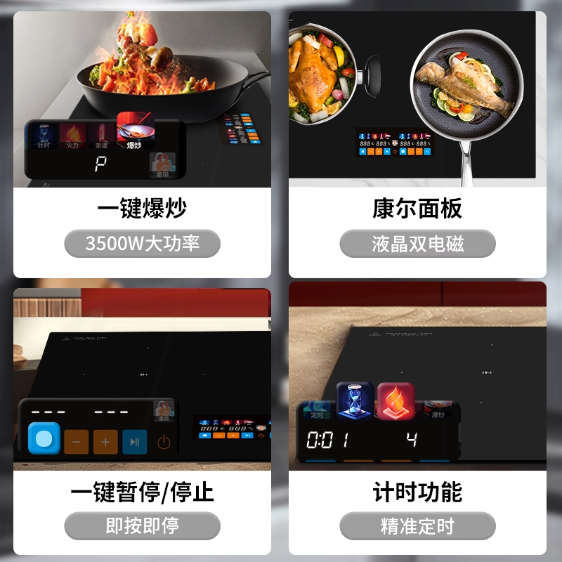 3500w大功率双灶9档爆炒菜半桥德昕嵌入式电磁炉家用款双灶彩屏