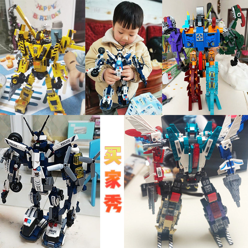 拼装儿童玩具益智力动脑男孩8岁变形机器人金刚恐龙中国积木拼插