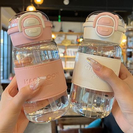玻璃水杯女高颜值学生双饮吸管杯
