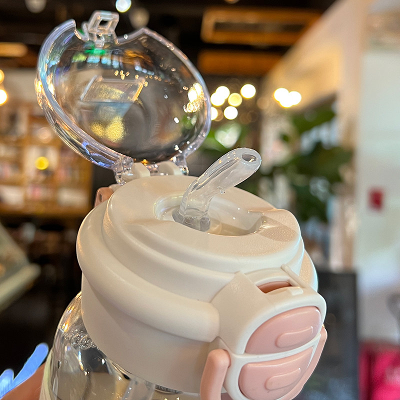 可爱水杯2025新款女高颜值办公室玻璃吸管杯子夏天便携学生双饮杯