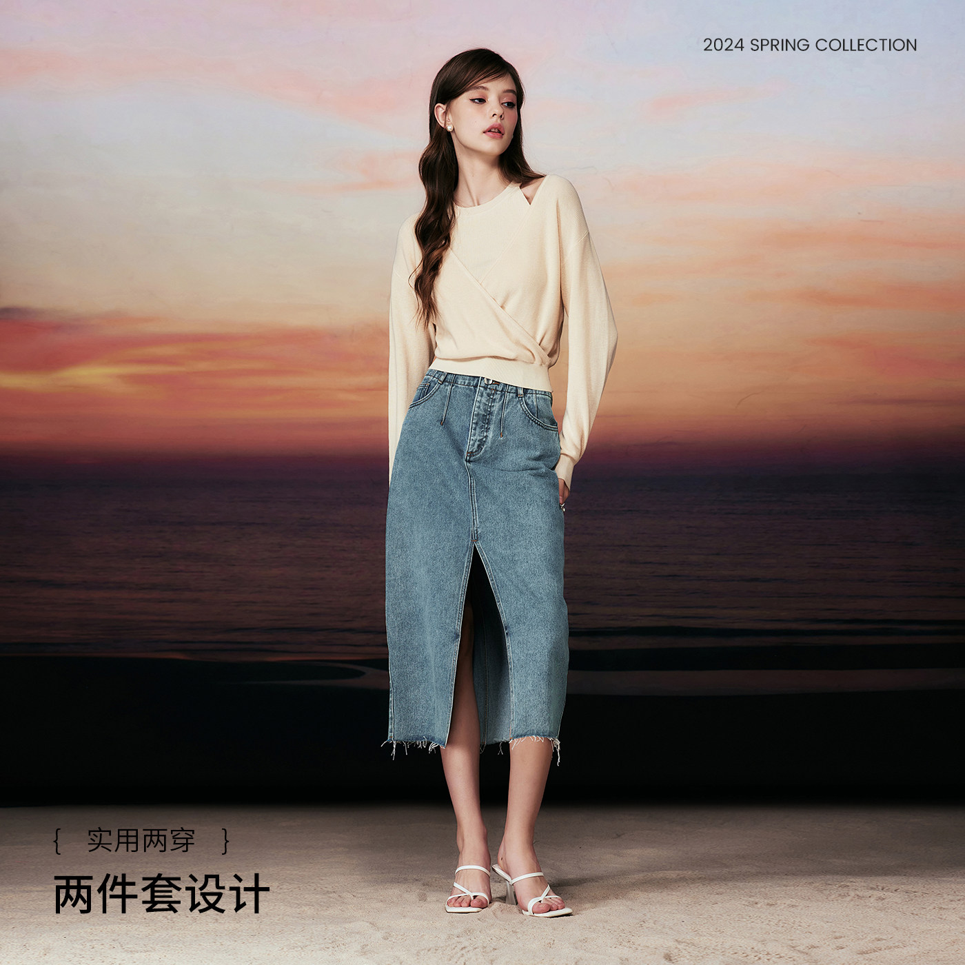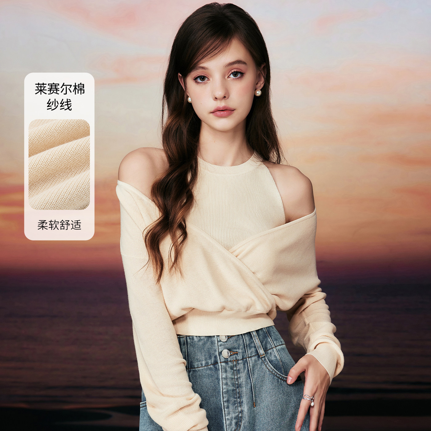 商场同款糖力 纯欲风莱赛尔棉混纺针织衫两件套装上衣女春秋季