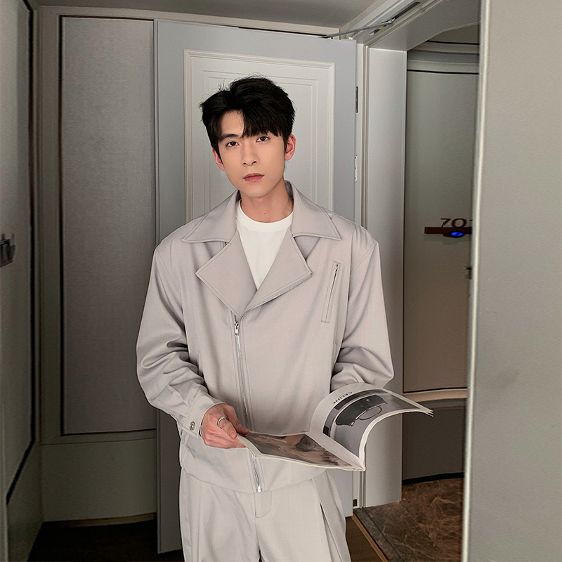 Hualun男生衣服高级感套装潮痞帅时尚斜拉链设计男装春季一套搭配