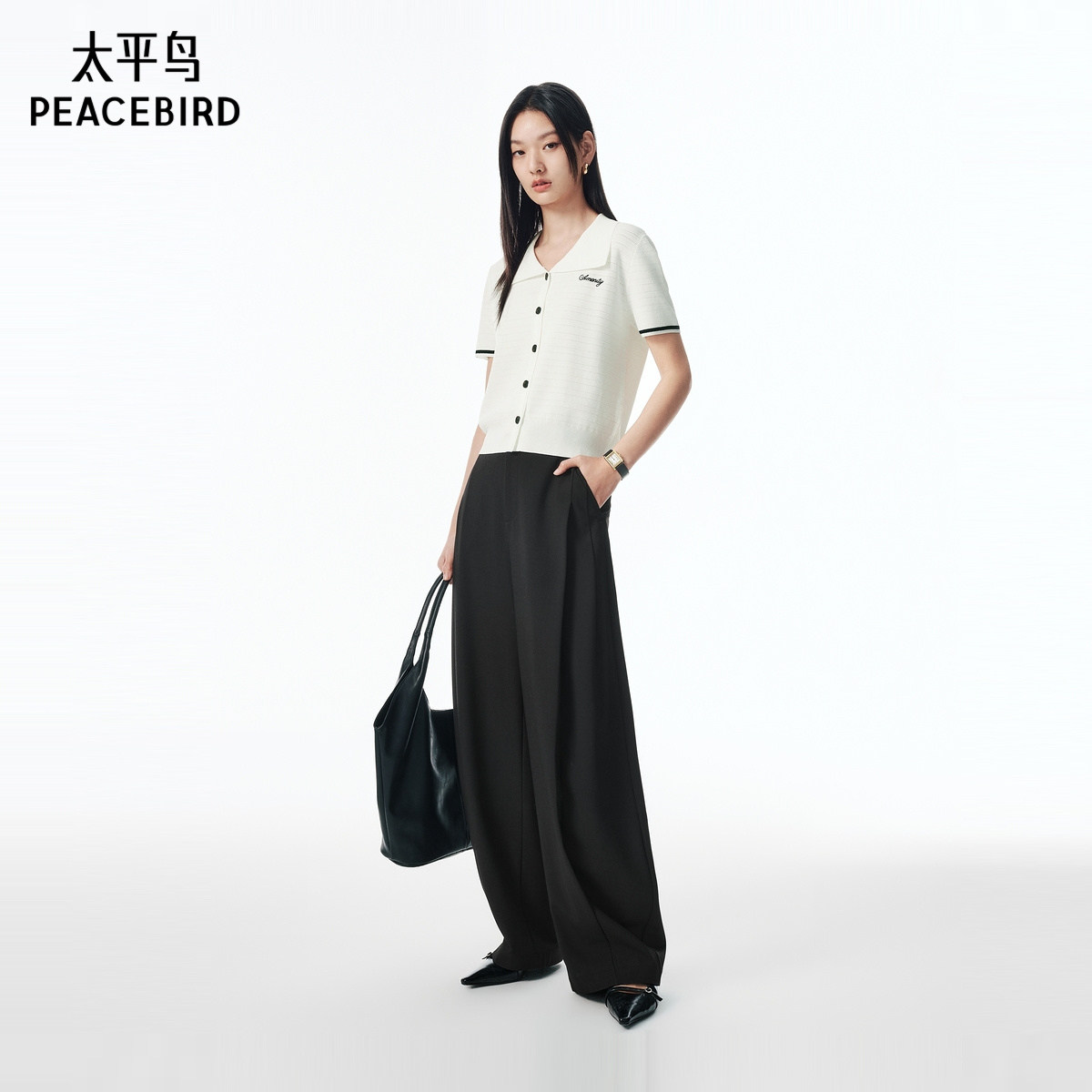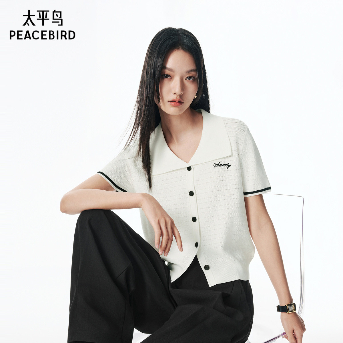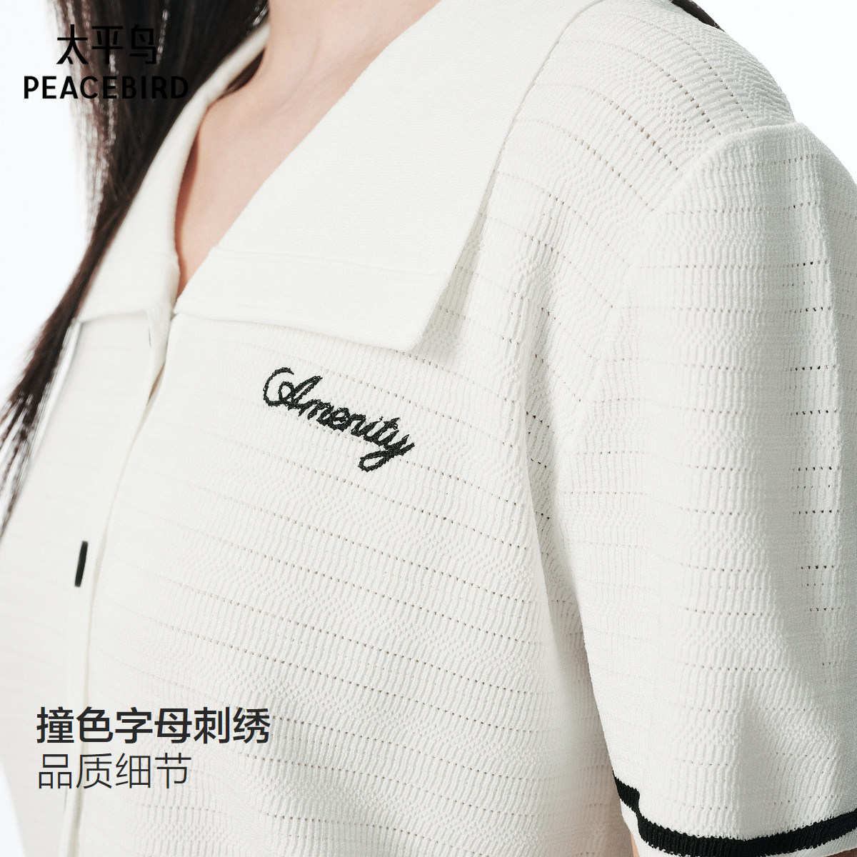 【商场同款】太平鸟25秋季新款撞色短袖时尚翻领开衫女A1EDF3117