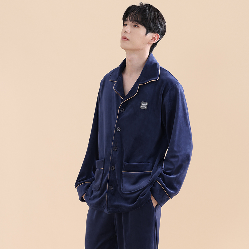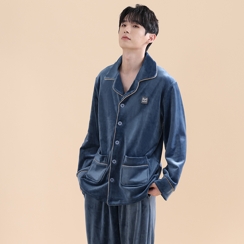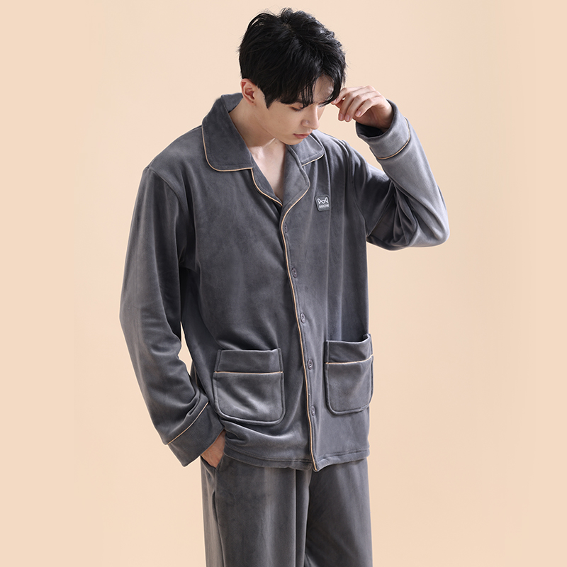 猫人男士睡衣珊瑚绒加绒加厚秋冬季保暖长袖法兰绒男款家居服套装