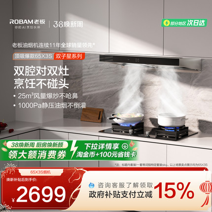 [欧式爆款]老板双子星65X3S抽油烟机燃气灶一套大吸力官方旗舰店