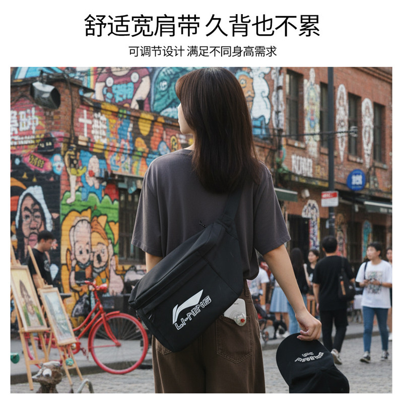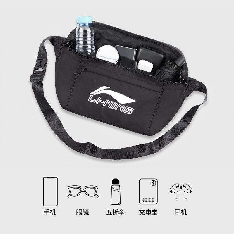 李宁腰包男女同款大容量户外运动斜挎包跑步手机包轻便旅行胸包