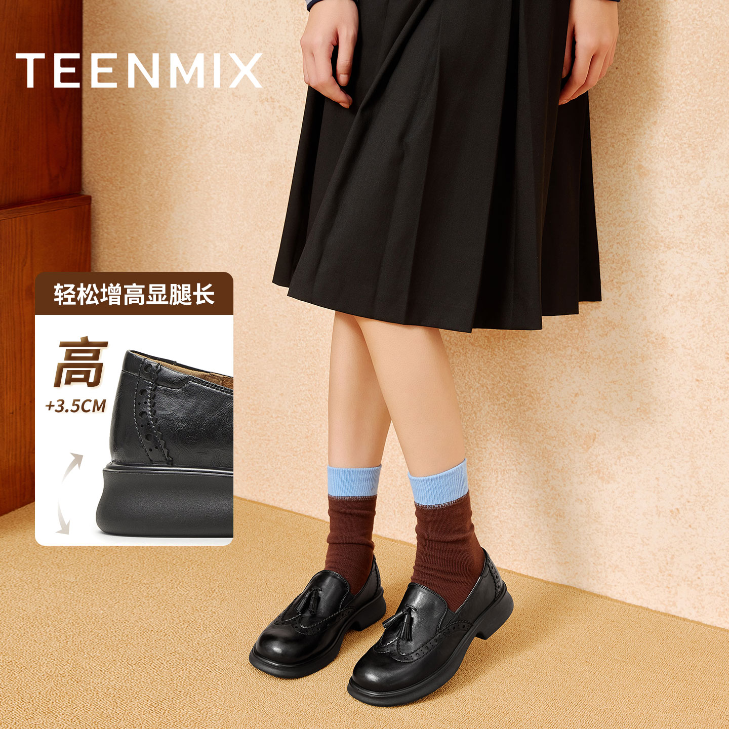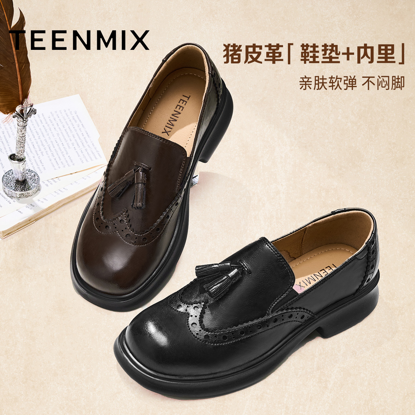 【双11预售】天美意布洛克流苏复古乐福鞋小皮鞋女秋新款平底单鞋