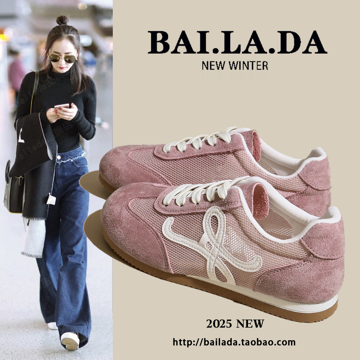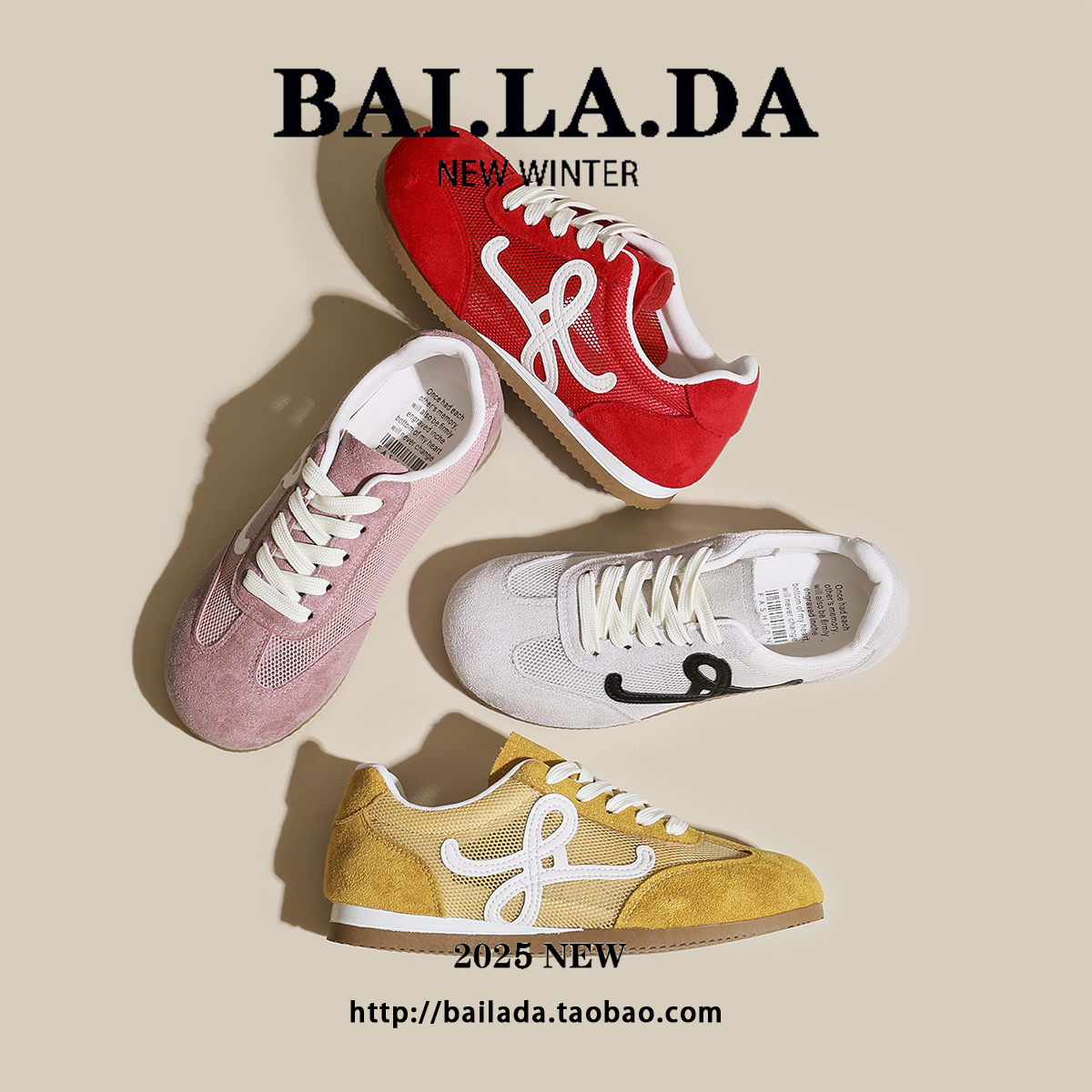 爆款网面透气红色德训鞋小白女鞋女款2025春夏季新款百搭休闲鞋子