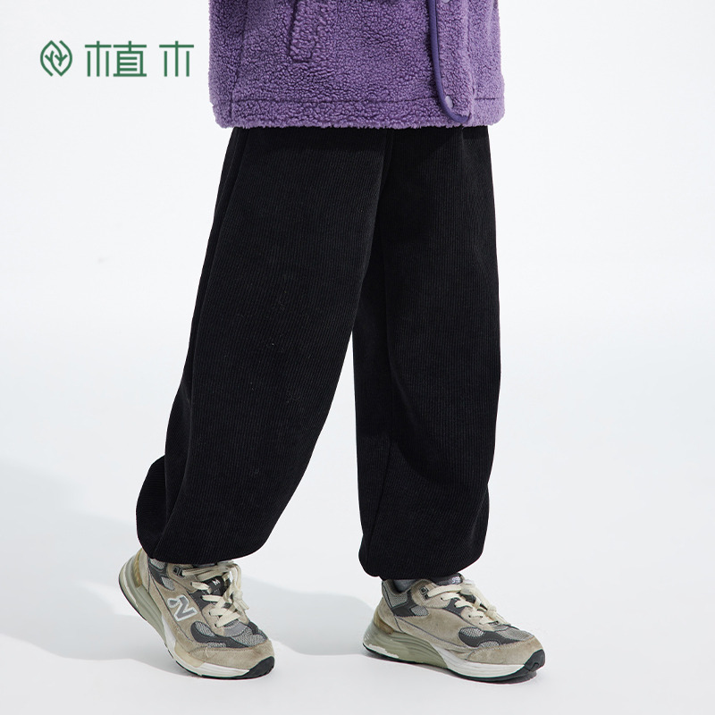 植木童装男童裤子2025新外穿秋冬中大童加绒束脚运动裤儿童裤子