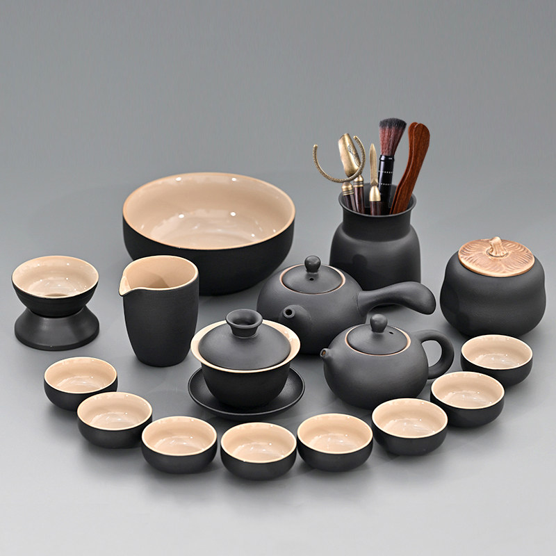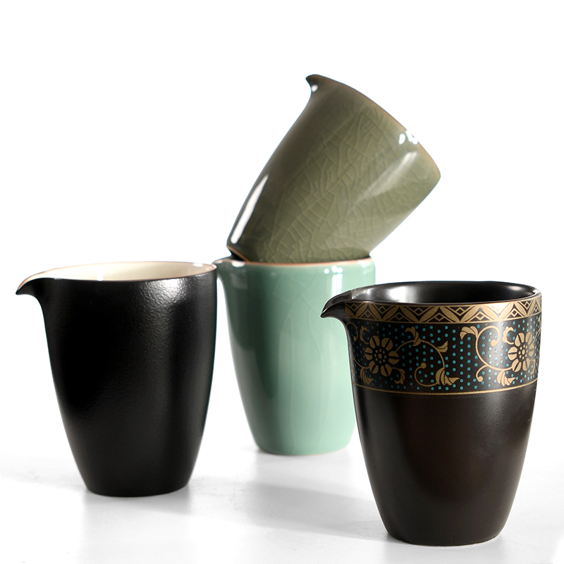 黑陶瓷公道杯功夫茶具零配件公杯茶漏套装简约陶瓷大号茶海分茶器