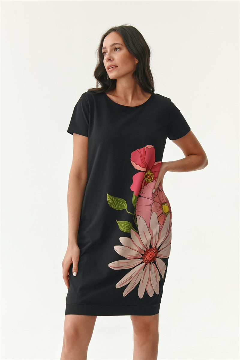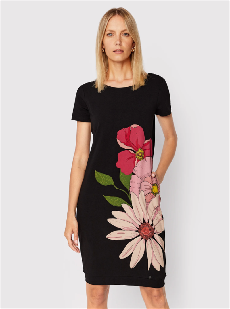 坚持原单 欧洲单 夏季新款 中年全棉印花侧口袋女士短袖连衣裙