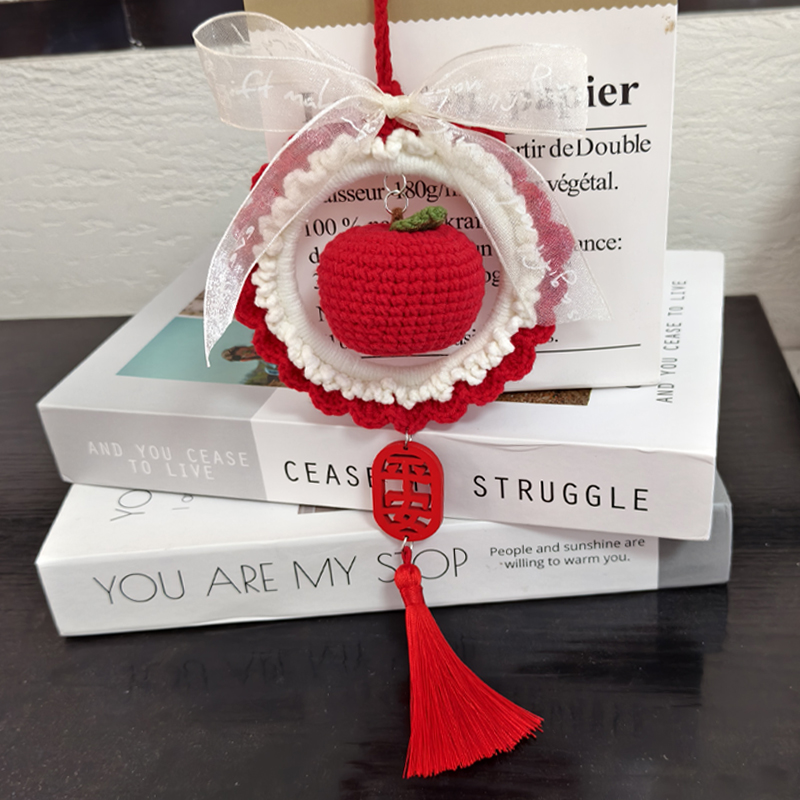 仿真苹果车载挂件汽车平安车挂手工diy材料包毛线编织平安夜礼物