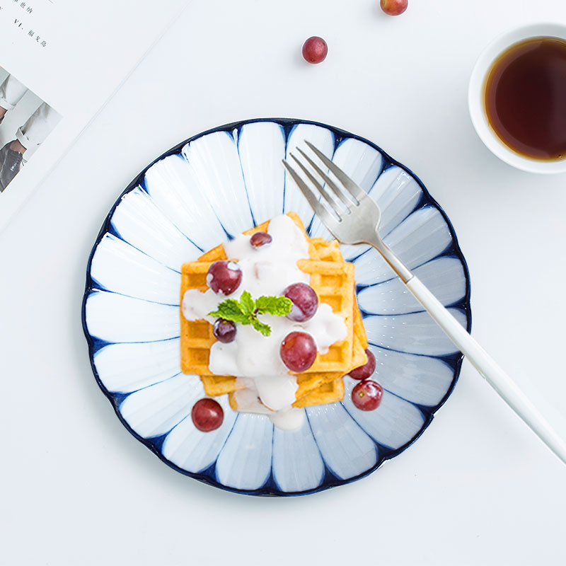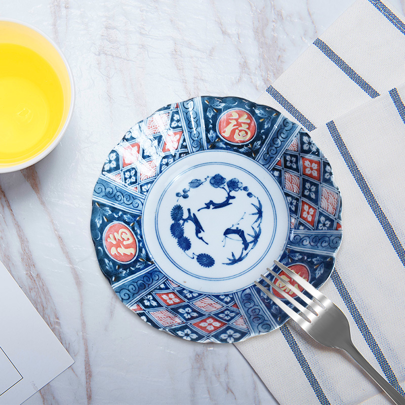 日本美浓烧进口釉下彩餐具陶瓷盘子家用饺子寿司意面水果盛菜圆盘