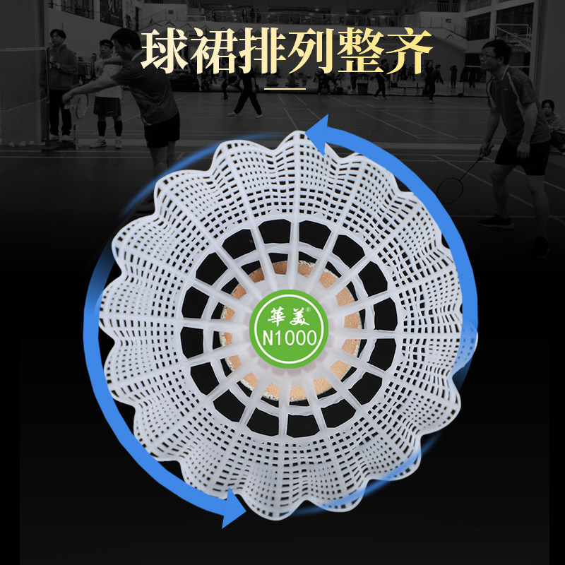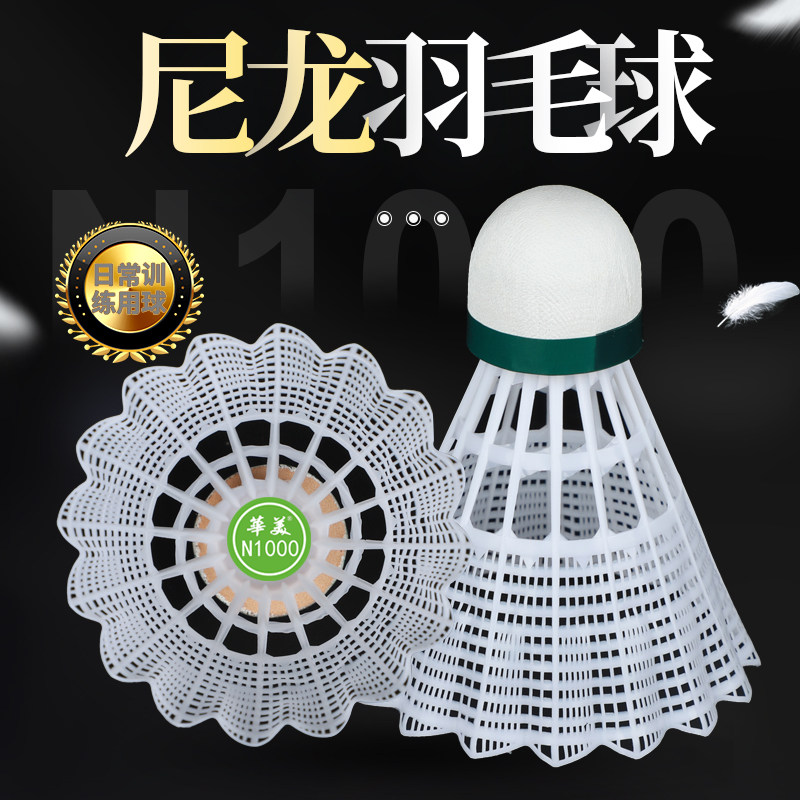 华美N1000尼龙羽毛球专业训练比赛塑料室内外耐打不易烂6只装