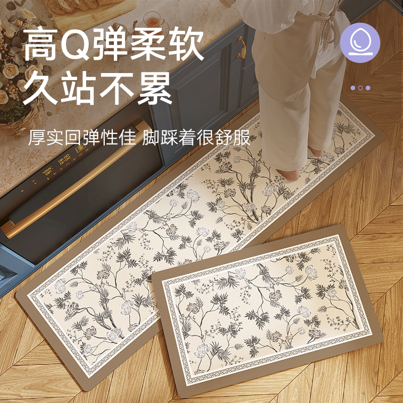 大江地垫欧式花朵长条厨房专用可擦洗地毯加厚防水防油防滑脚垫子