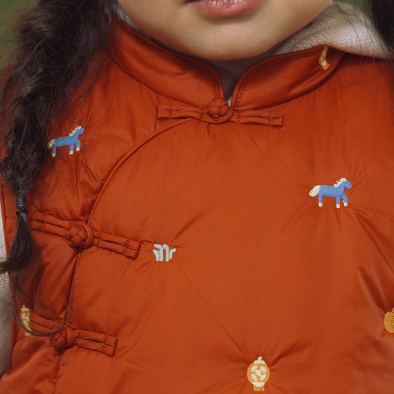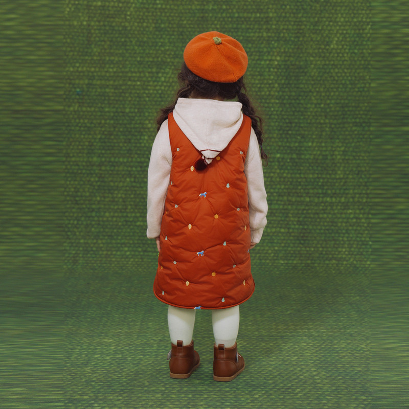 【新品】papa爬爬冬季儿童裙子女童无袖连衣裙新中式夹棉新年百搭