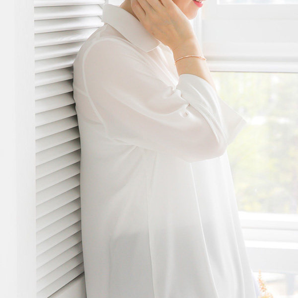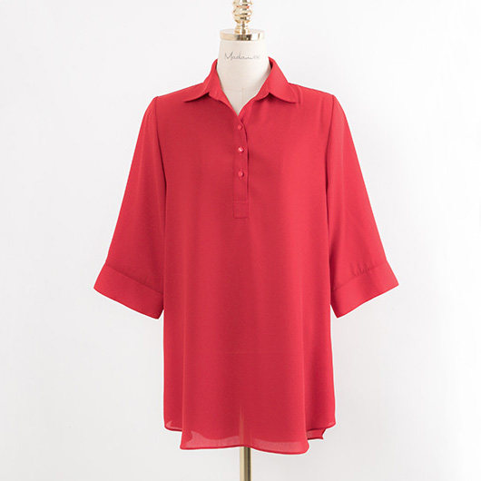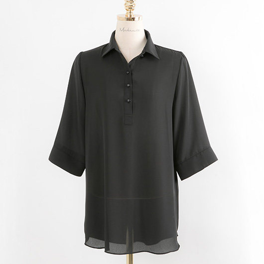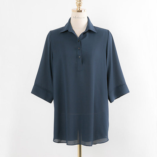 现货韩国中老年女装衬衣七分袖春夏妈妈纯色翻领宽松上衣BL904100