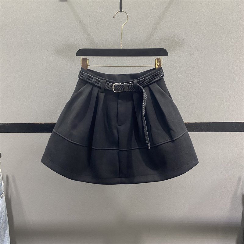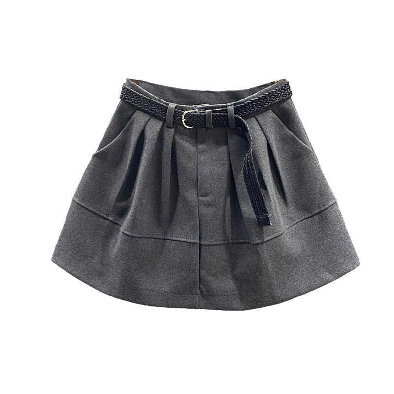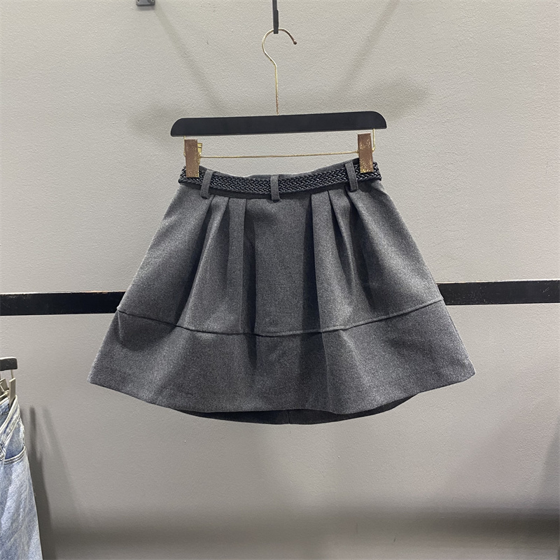 灰色毛呢花苞半身裙女蓬蓬短裙