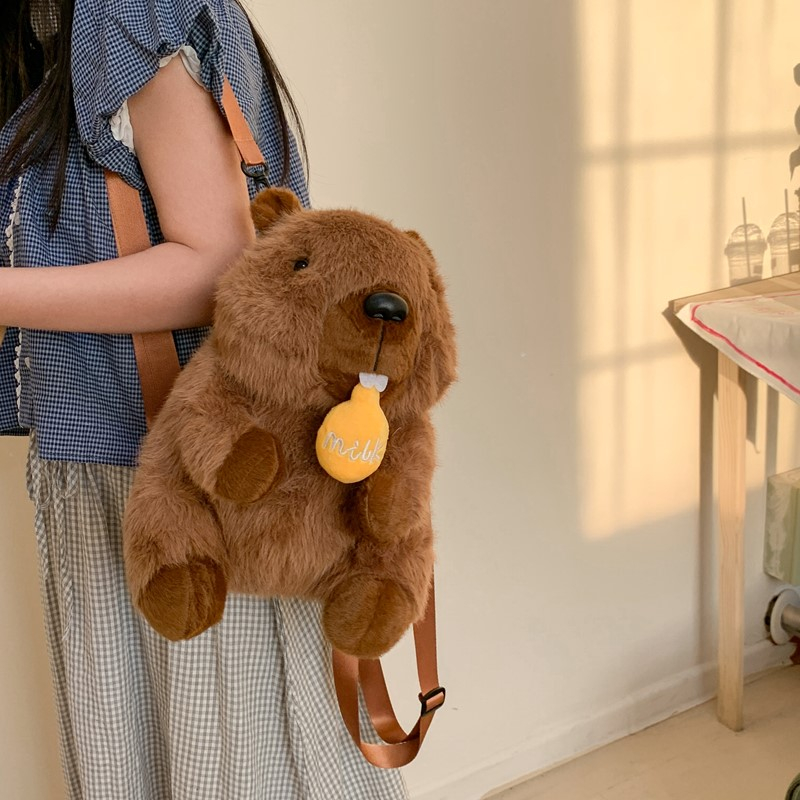 可爱土拨鼠卡通双肩包女2025新款潮个性玩偶书包幼儿园毛绒背包