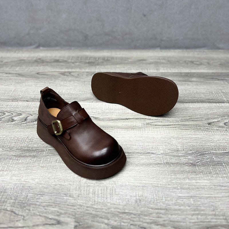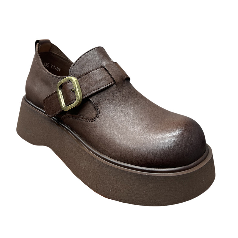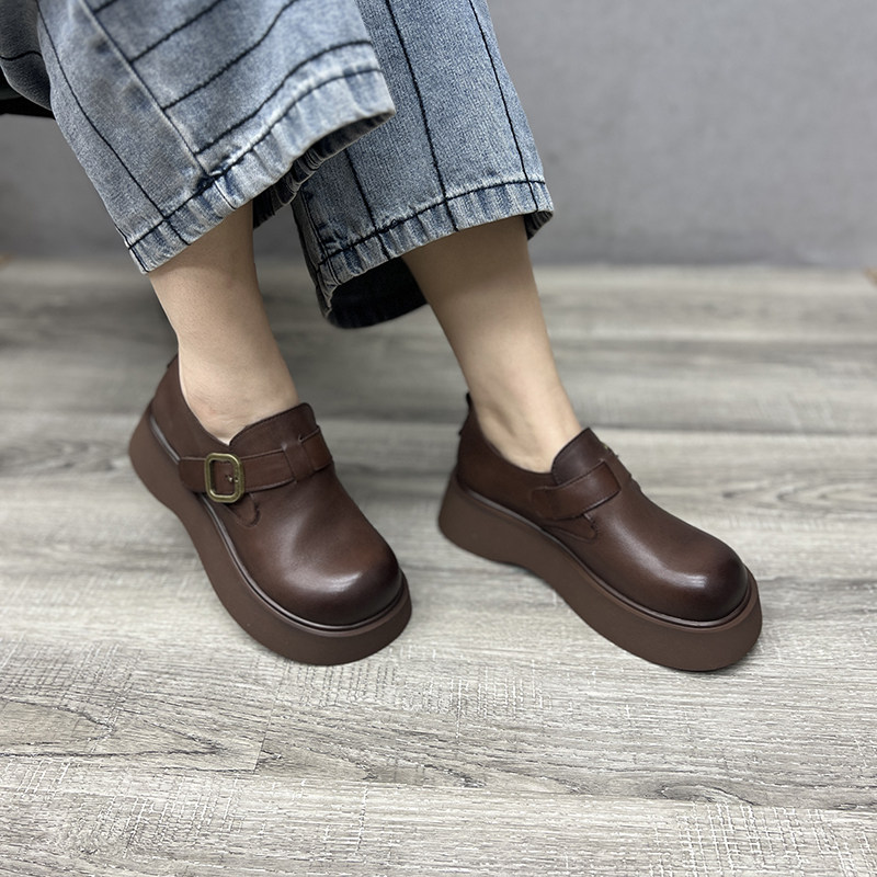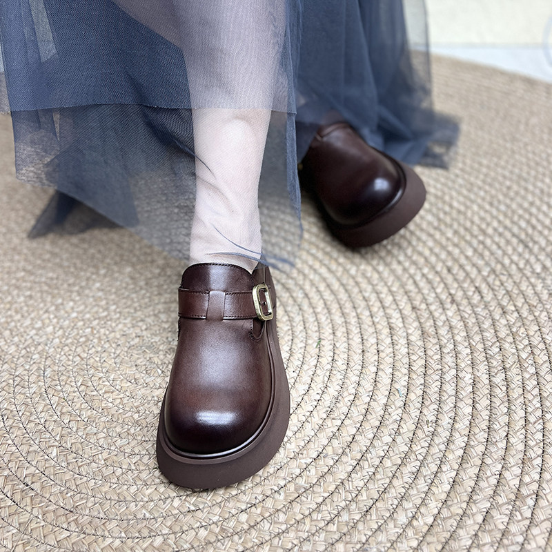 艺鞜2025春季新款厚底大圆头娃娃穆勒鞋皮带扣女鞋松糕T字单鞋子