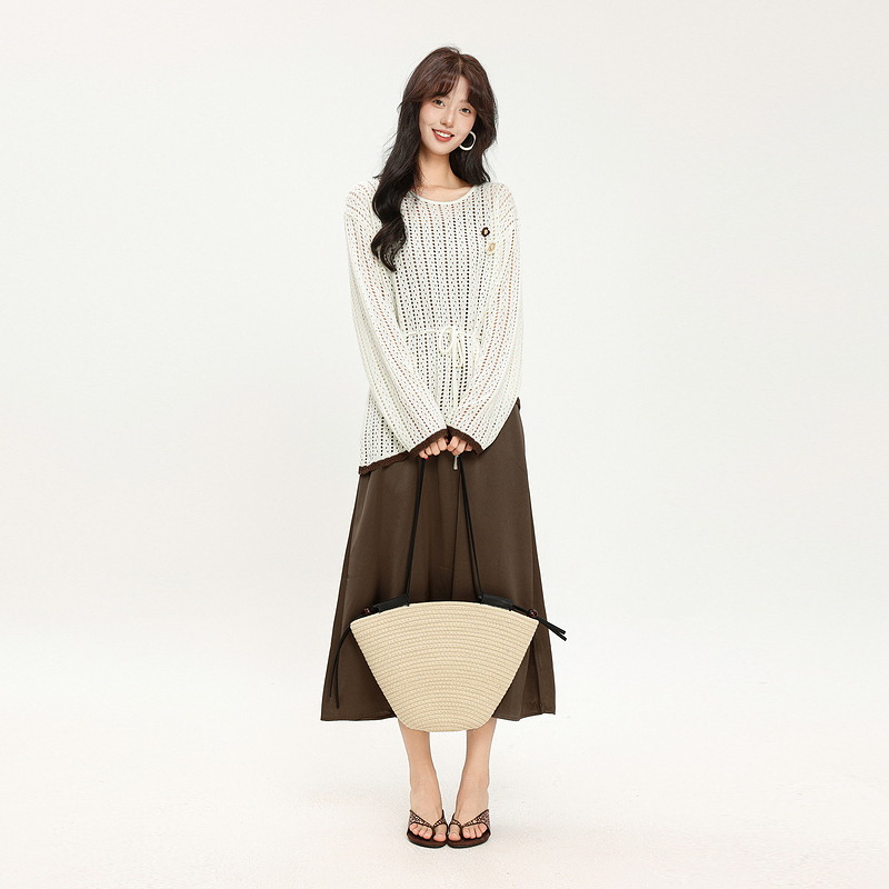 记忆的起点连衣裙套装2025秋新款针织罩衫吊带裙两件套69AQ80017