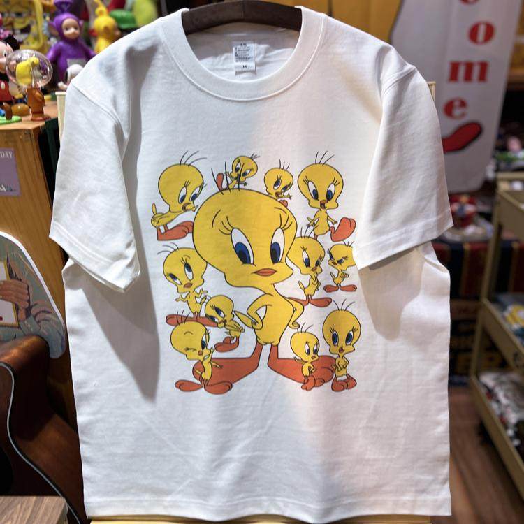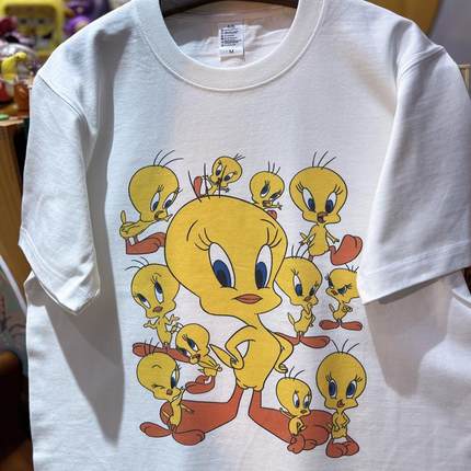 美式复古 vintage 可爱翠迪小鸟 纯棉265克重磅圆领情侣T恤短袖