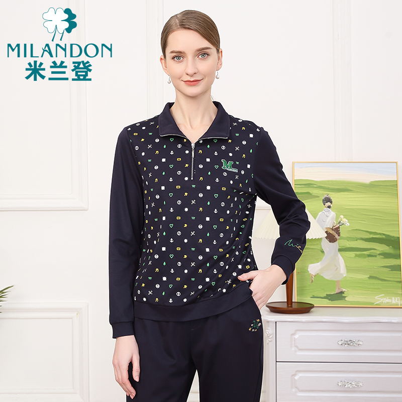 米兰登中老年妈妈装2024年春秋新款休闲时尚中年女装上衣长袖T恤