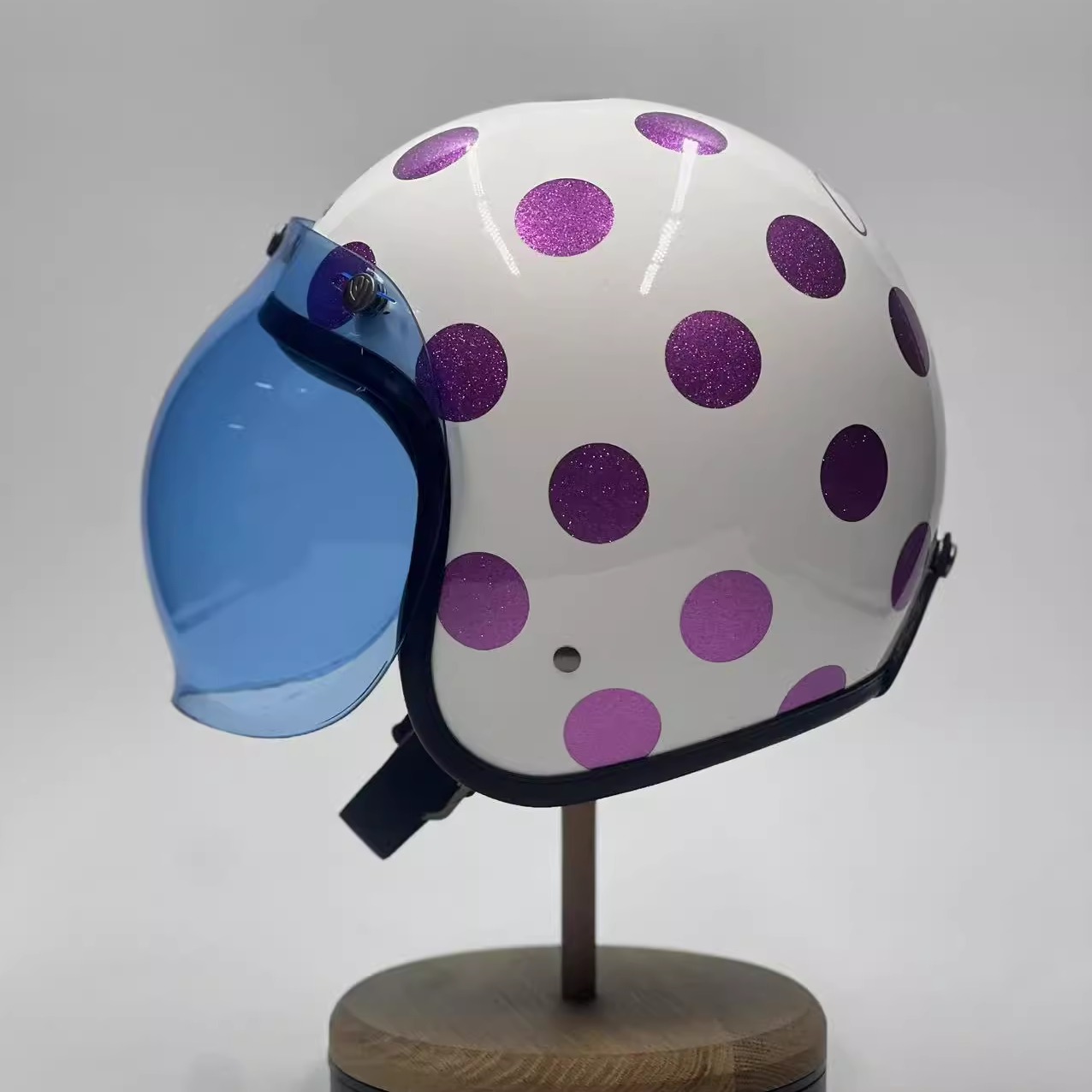 veda碳纤维摩托车粉紫波点头盔女