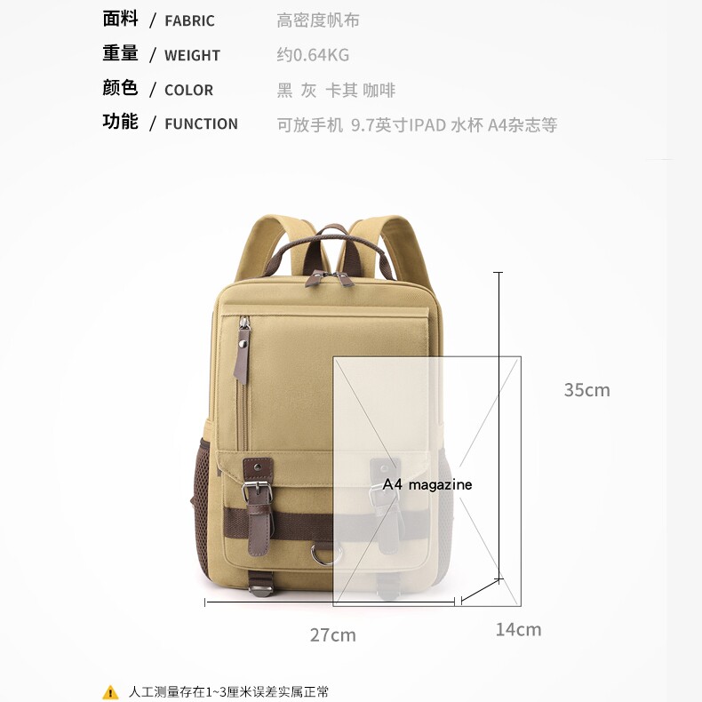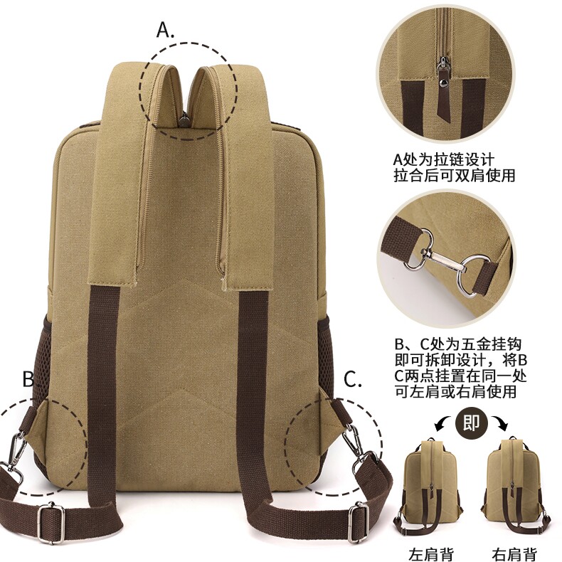 男士帆布双肩单肩斜挎多功能背包