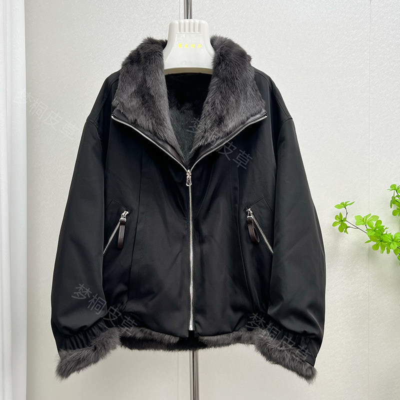 2025新款兔毛皮草外套女时尚宽松短款翻领皮毛一体两面穿真毛外套