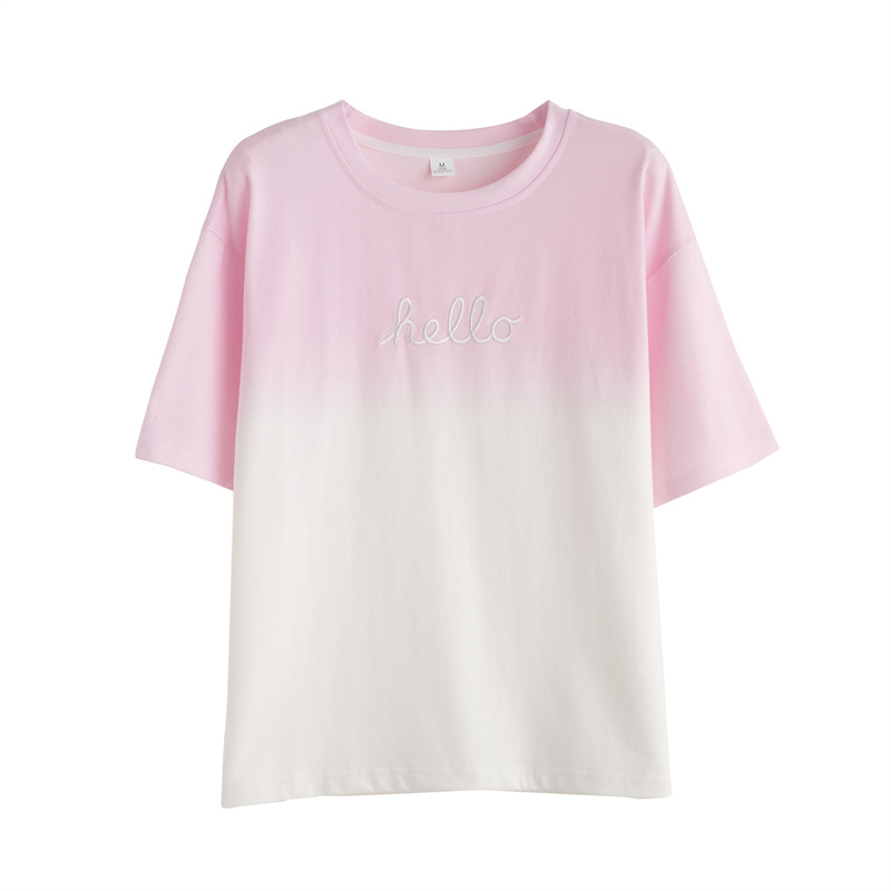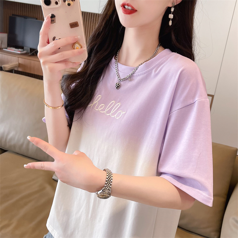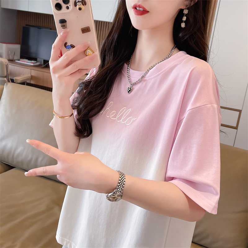 设计感小众渐变色t恤女短袖夏2025新款韩版宽松大码女装半袖上衣