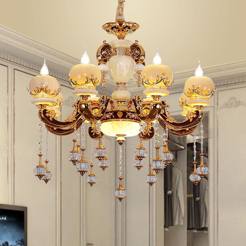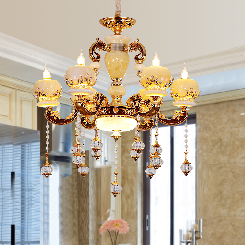 天然白玉吊灯欧式水晶客厅灯餐厅卧室别墅复式楼奢华大气灯具新款