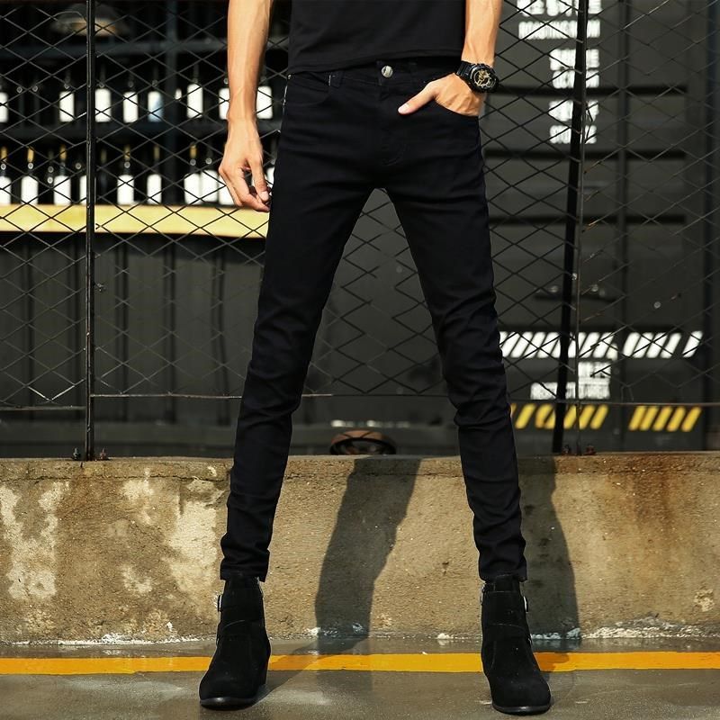 牛仔裤男春秋黑灰纯黑色韩版潮流修身小脚夏季薄款弹力休闲长裤子