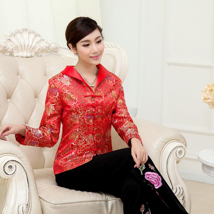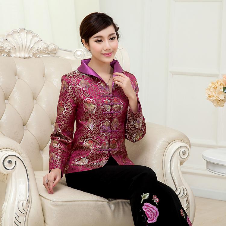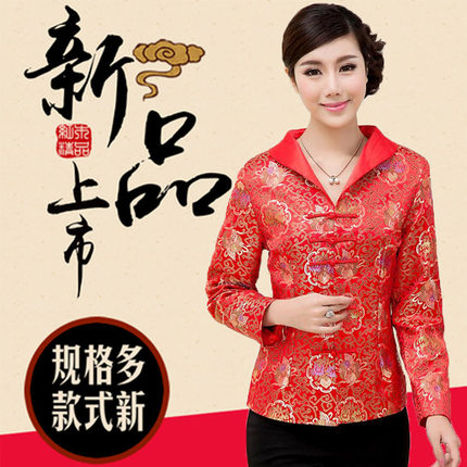 唐装女士春秋装上衣长袖外套中式盘扣上衣女民族妈妈婆婆锦缎棉衣