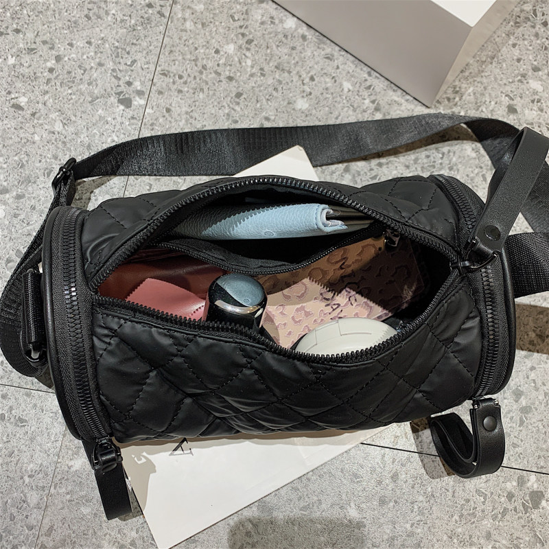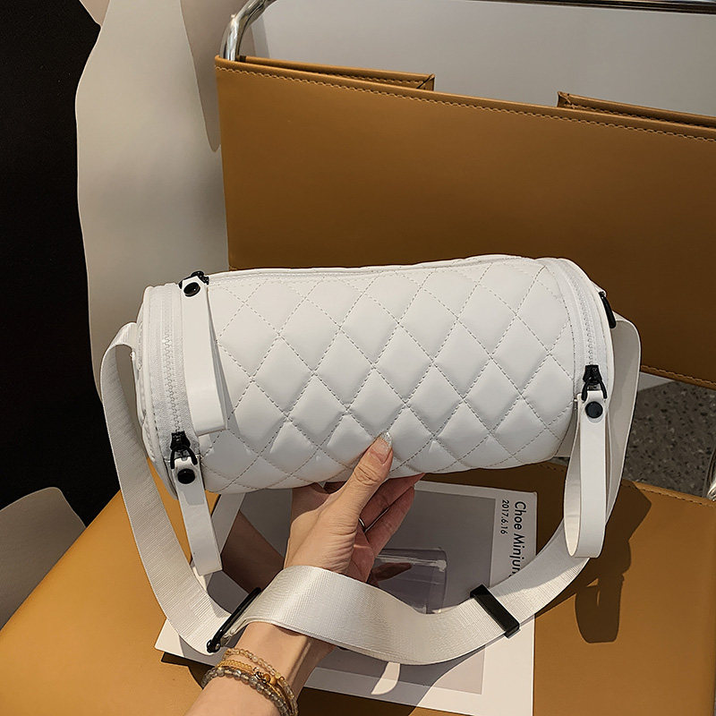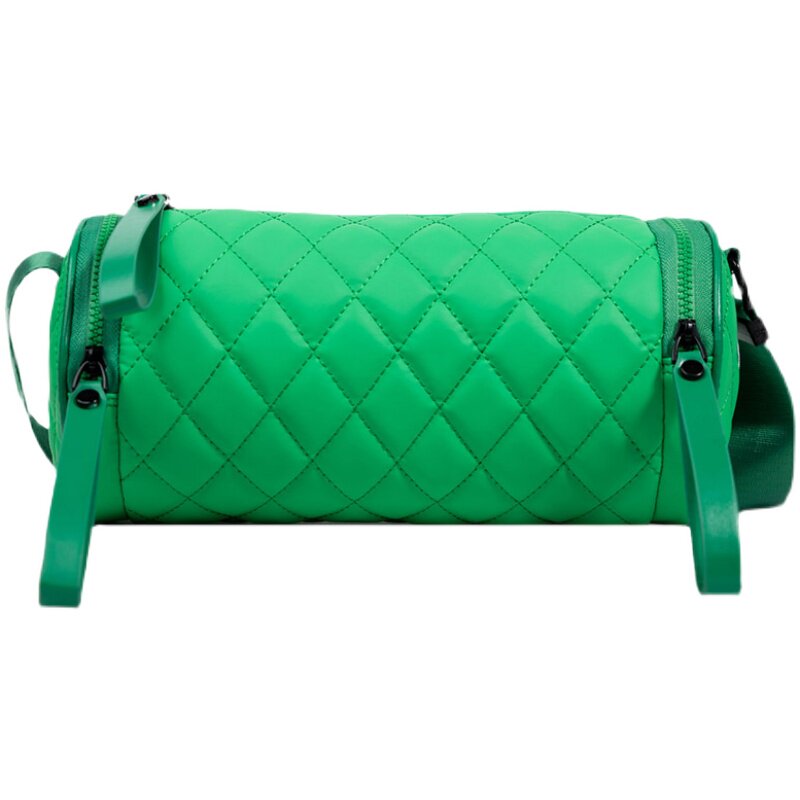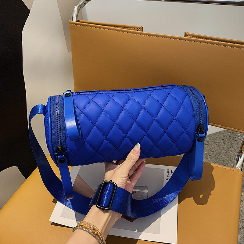 宽肩带时尚小包百搭质感圆桶菱格网红单肩高级感洋气斜挎女包绿色