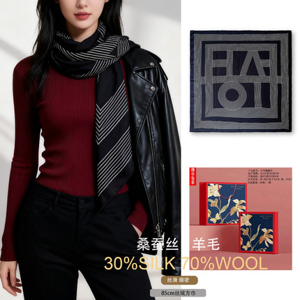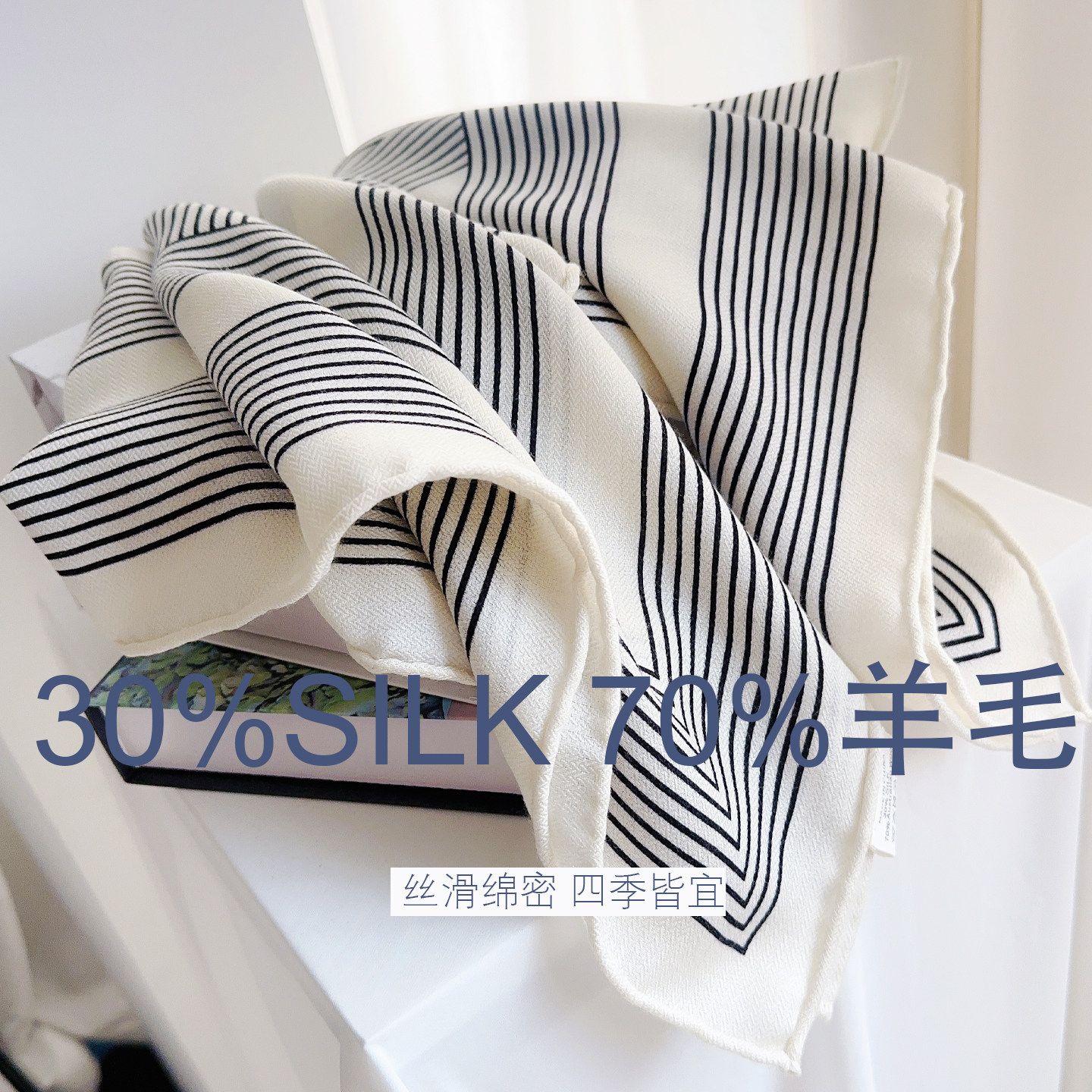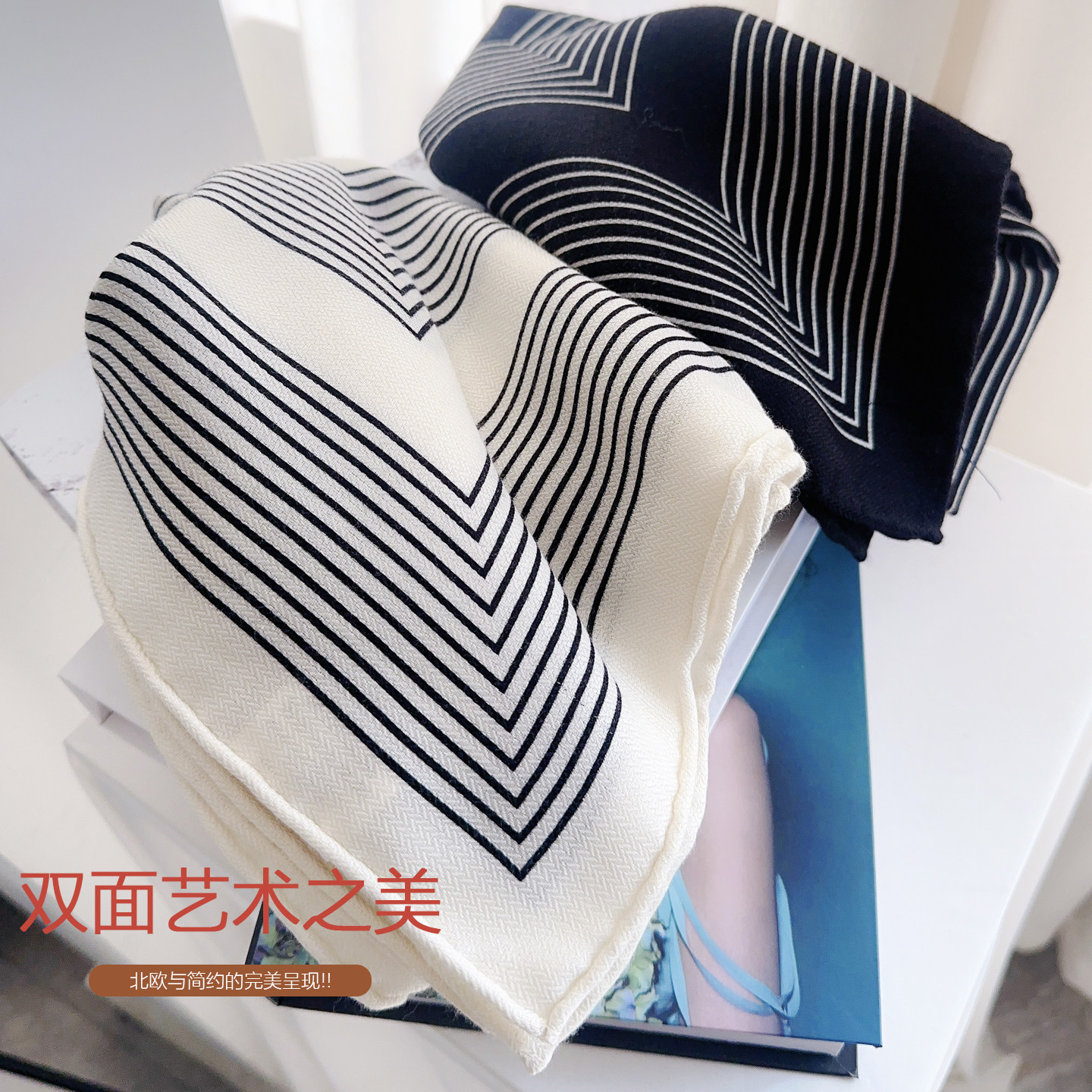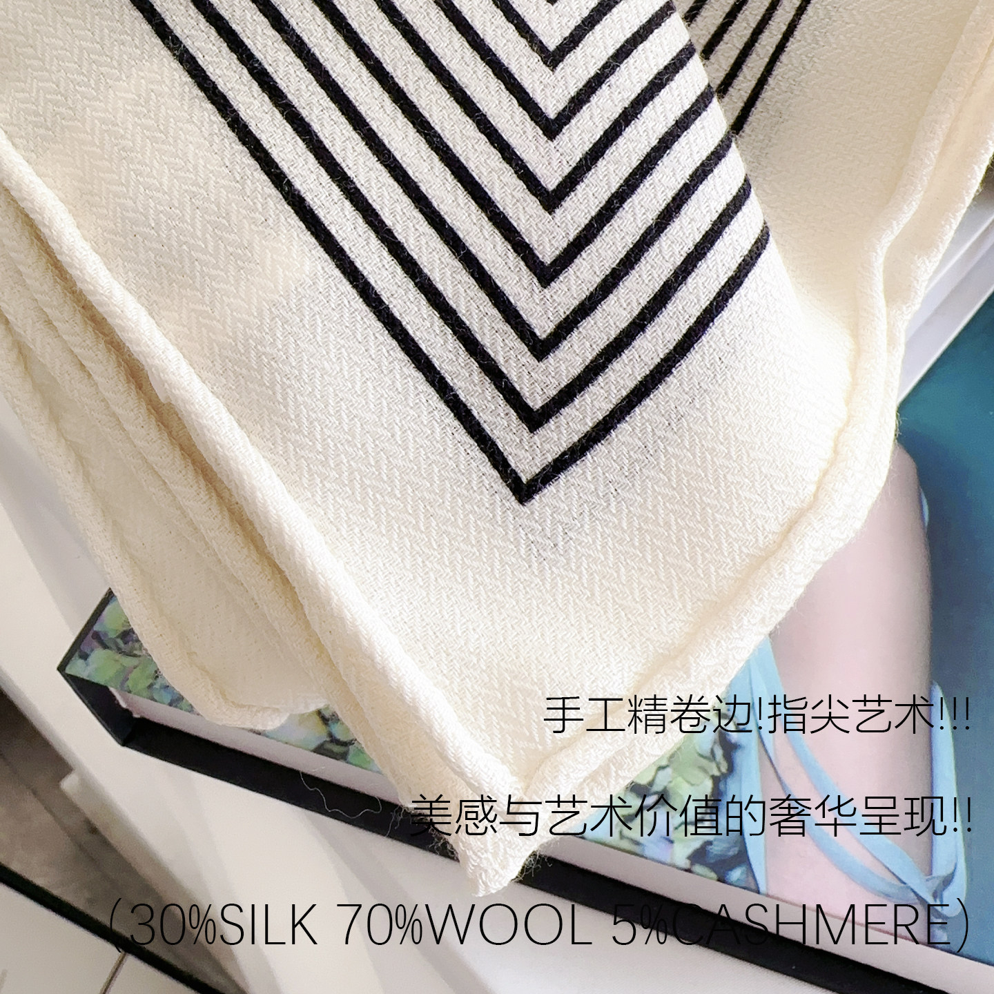 【90cm丝毛方巾】黑白线条手秋冬丝毛卷方巾围巾两用高端大牌披肩