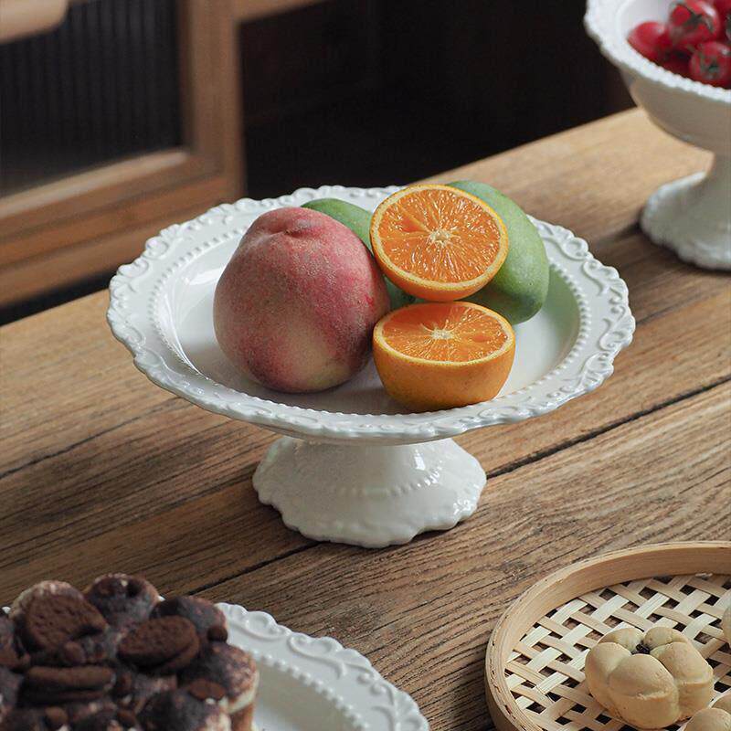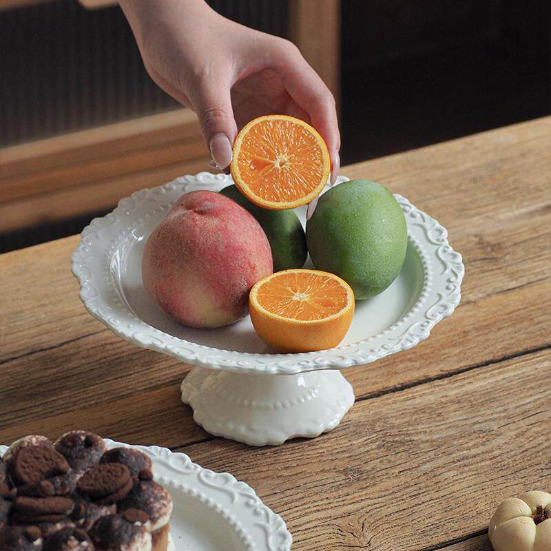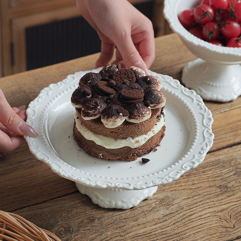 索厨法式覆古浮雕陶瓷高脚托盘果盘点心盘蛋糕下午茶盘客餐厅摆件