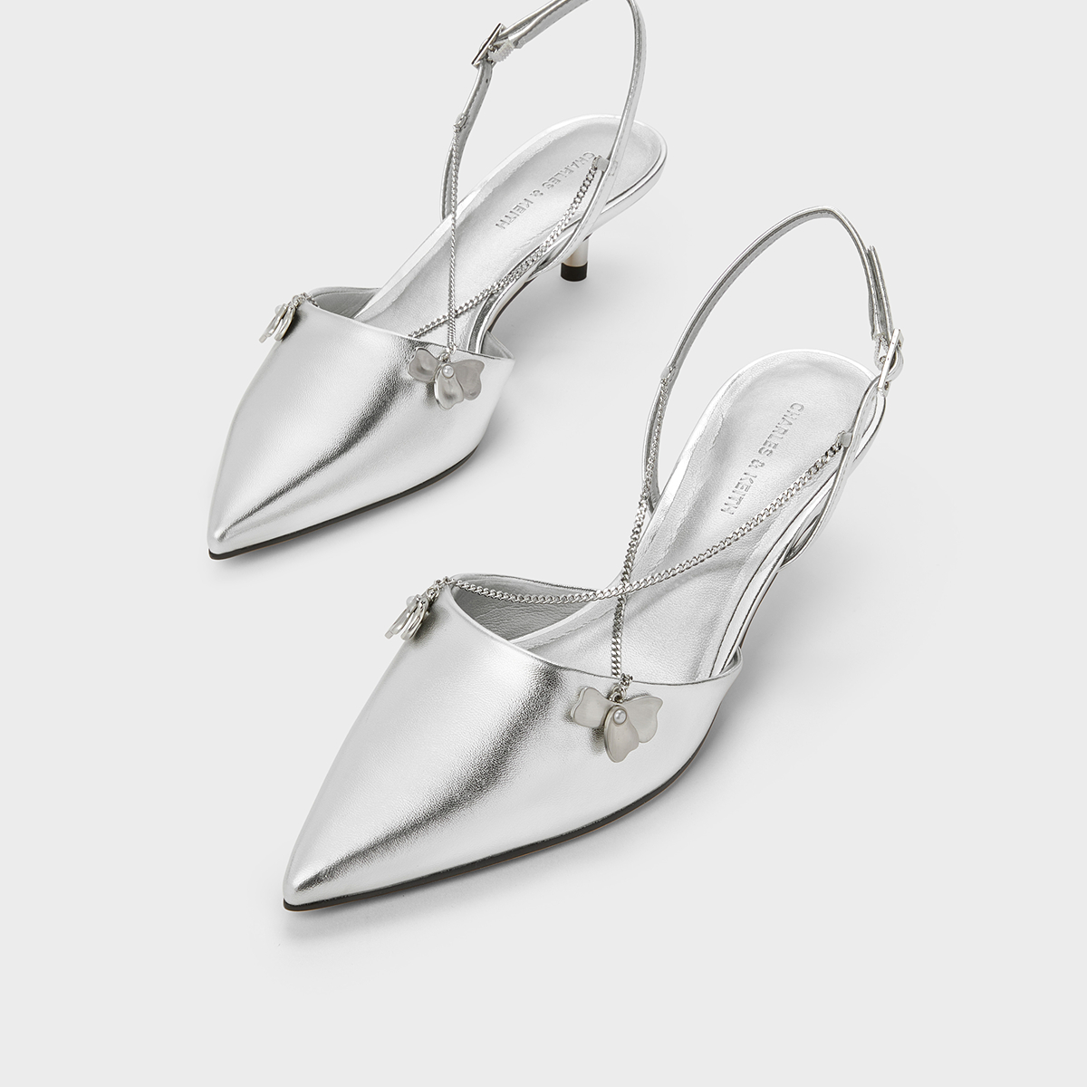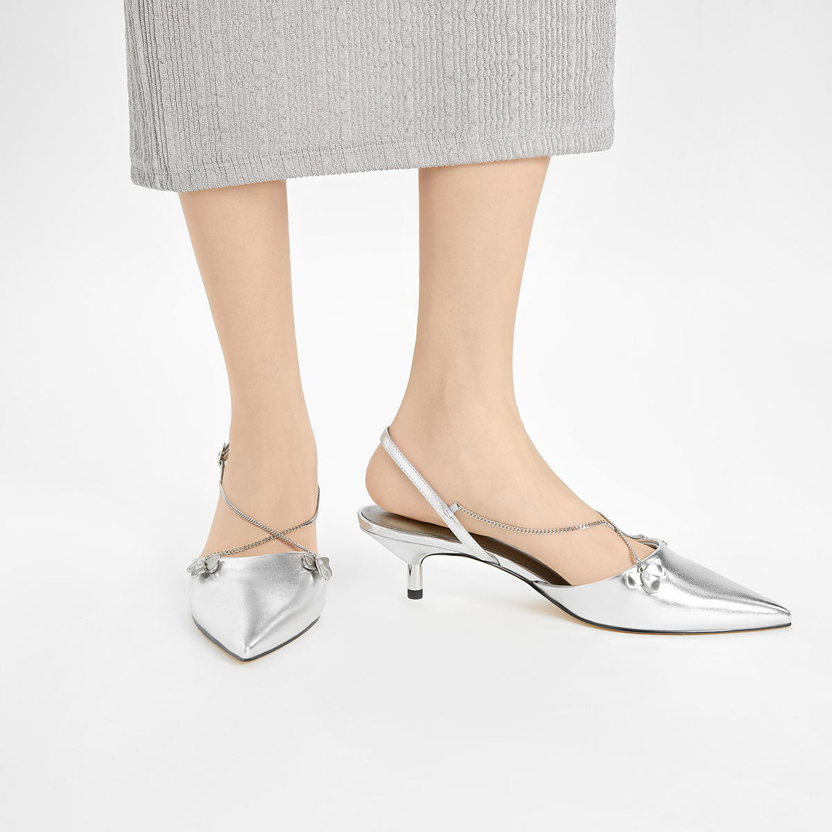 CHARLES&KEITH秋冬女鞋CK1-61720188尖头细跟后空交叉链条凉鞋女