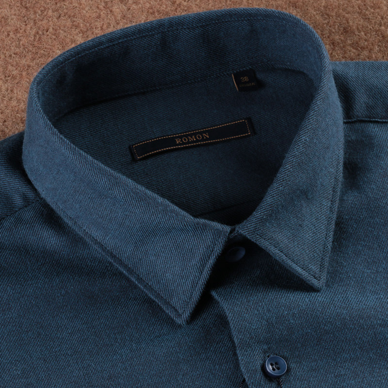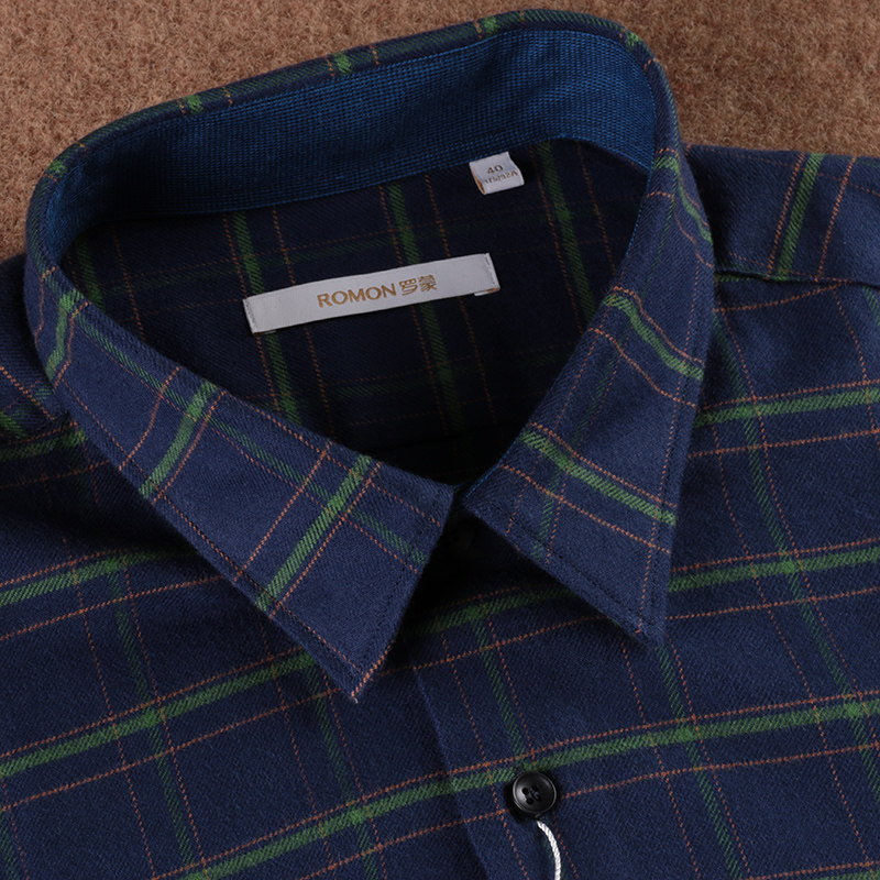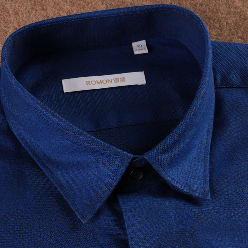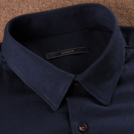 罗蒙男士衬衫深蓝色羊毛衬衫专柜正品罗蒙衬衣衬衫修身男羊毛衬衫