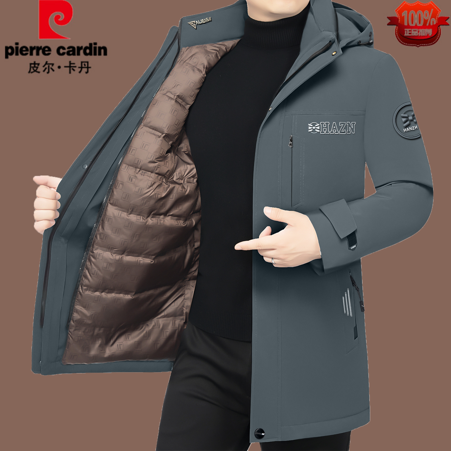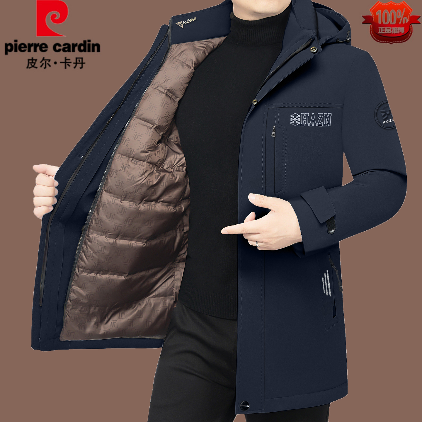 皮尔卡丹正品男士羽绒服冬季新款加厚鹅绒中长款男外套中年派克服
