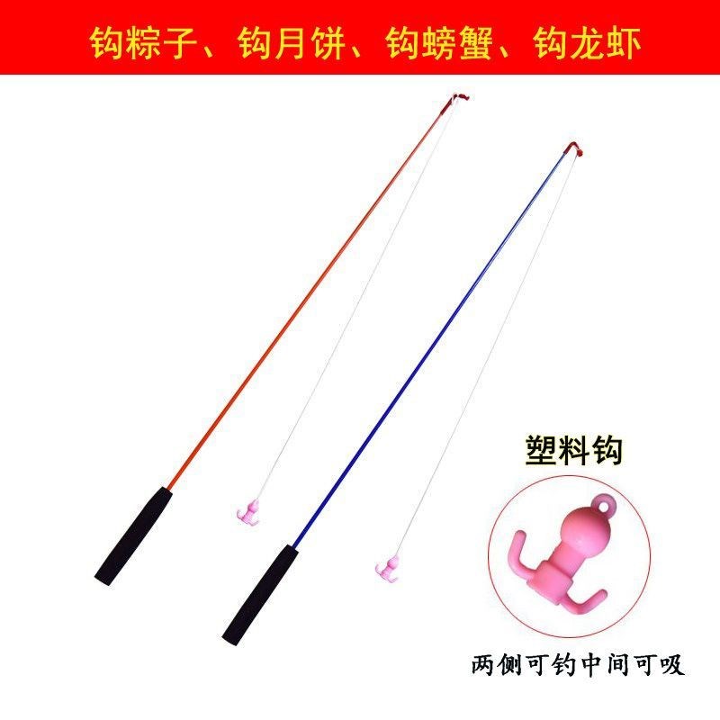 端午节钓粽子道具钓KT板拔萝卜游戏杆钓月饼竿钓螃蟹儿童钓鱼竿做